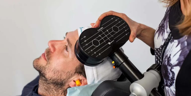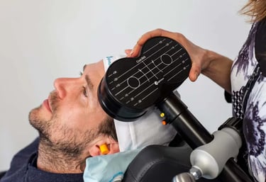 Estimulación Magnética Transcraneal (TMS), tratamiento no invasivo que utiliza pulsos magnéticos para modular la actividad cerebral.
